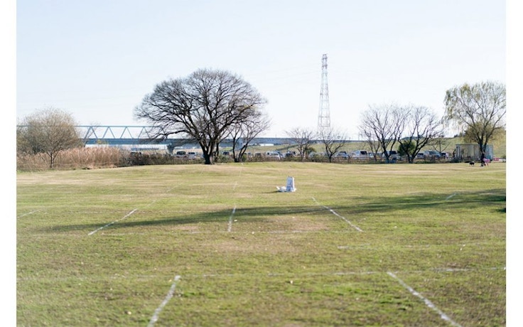 しばらくすると現れる、思っていた以上に広い江戸川の河川敷。サッカーの練習をする少年たち、凧を落としてばかりの女の子、正月には駐車場代わりになるのか、芝生の上で石灰のライン引きを押す老人たち。