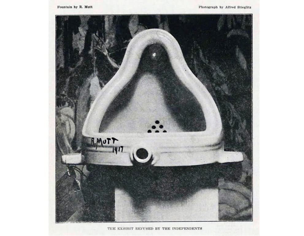 見ておわかりのとおり、既製品の男性用小便器に「R. MUTT, 1917」という署名と《泉》というタイトルが付けられただけの作品である。アンデパンダン展は、出展料6ドルを支払えば無審査で誰でも作品を展示できるとしていたが、協会は議論の末に《泉》の展示を拒否した。何せ便器である。便器はおよそ芸術作品とは思えないということだ。