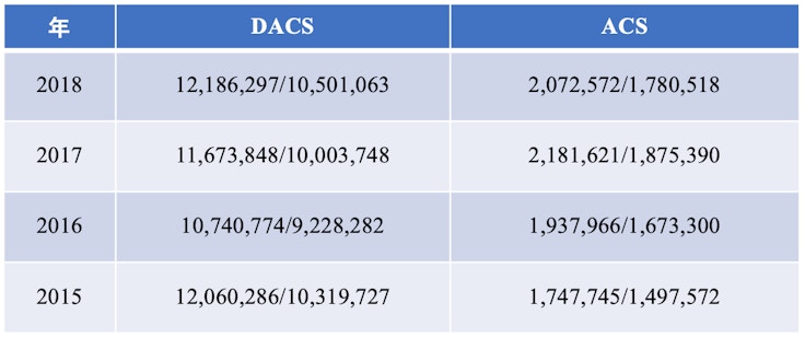 *13── DACS, Transparency Reports 2015 - 2018, and ACS, Transparency Reports, 2015-2019.なお、DACSは1月1日から12月31日を、ACSは6月1日から5月31日を会計年度としている。