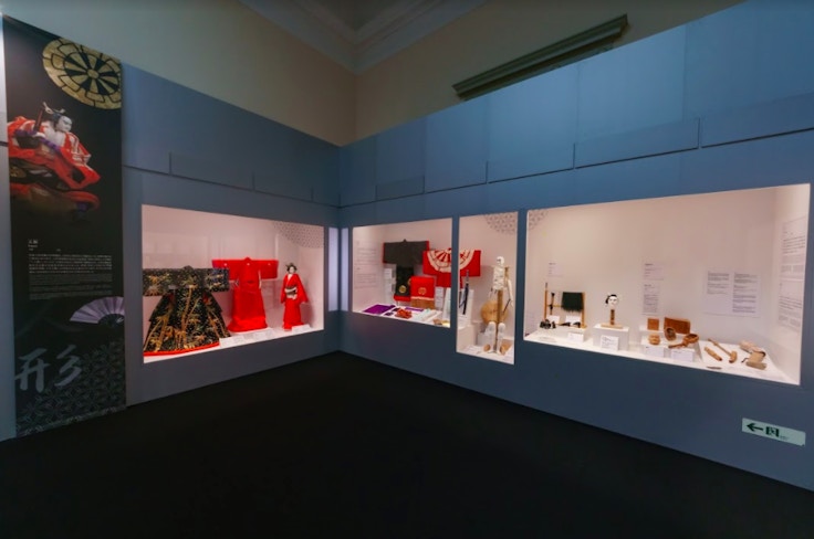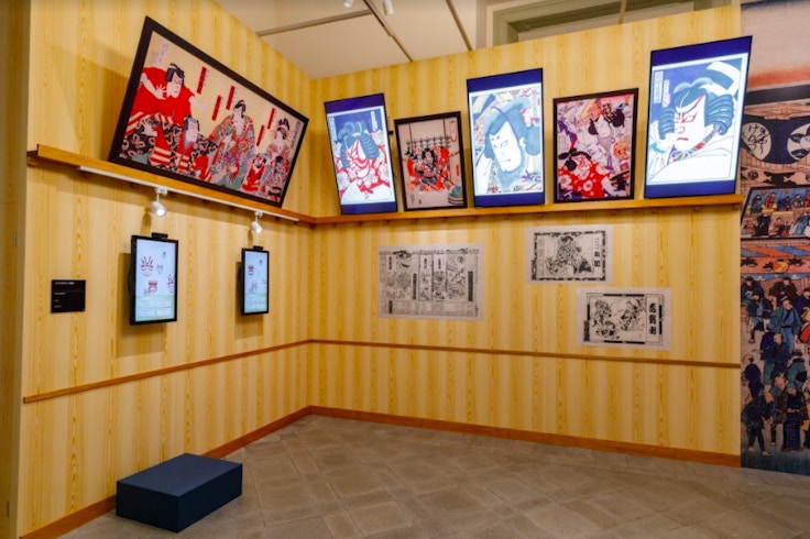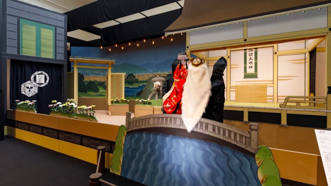 第1章「歌舞伎」では、歌舞伎の代表作である『義経千本桜』をテーマに、桜花爛漫の吉野山の明るく華やかな舞台を再現。ほかにも、明治期に活躍した浮世絵師・豊原国周の描いた錦絵や、舞台で使用される仕掛け付きの小道具、華やかな歌舞伎衣裳・鬘を見ることができる。第2章は「文楽」。『本朝廿四孝(ほんちょうにじゅうしこう)』の「奥庭狐火の段(おくにわきつねびのだん)」の再現舞台により、文楽特有の舞台の構造を可視化。3人で1体の人形を動かす「三人遣い」を紹介する。