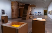 パビリオンというヴェネチアでの展示の状況から、アーティゾン美術館の美術館という状況の違いを色々考えました。具体的には、日本館のピロティに持ち上げられた展示室部分を90%のサイズで舞台の書割のようなかたちで再現したものを軸とし、その外側に制作過程のドキュメントや副産物的に生まれたもの、資料などのアーカイブを展開しています。