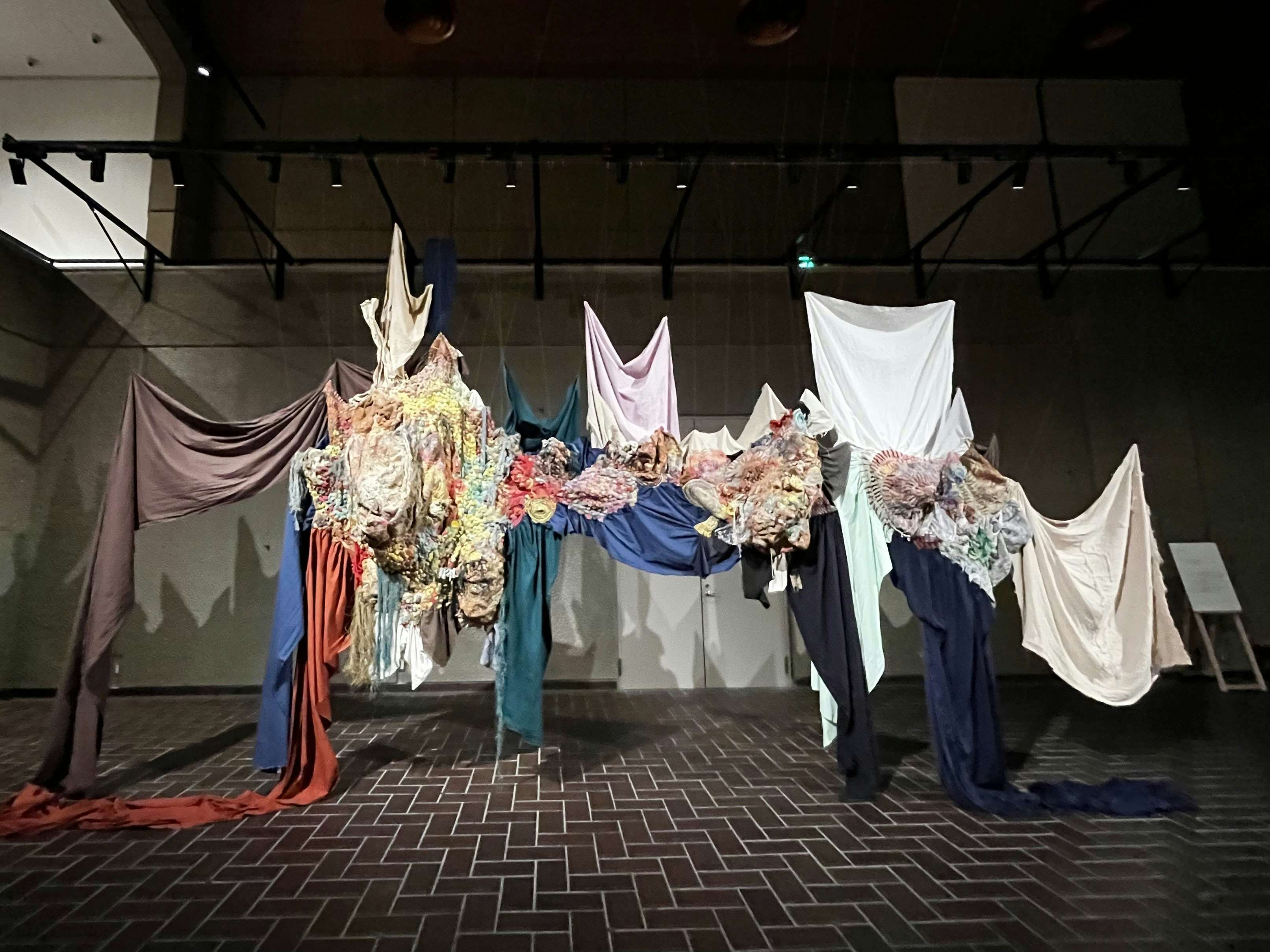 今回の企画は、筆者が2020年の当館着任以来、継続的に「上野アーティストプロジェクト」に携わるなかで生じた関心や疑問などが重なり合うことでかたちづくられていった。出発点のひとつとなったのが、21年に同じく上野アーティストプロジェクトとして筆者が企画を担当した「Everyday Life:わたしは生まれなおしている」展(2021年11月17日〜22年1月6日)における、貴田洋子の作品との出会いである。青森出身の貴田は、日展や日本現代美術工芸展で活躍する作家で、本来、衣服の防寒や補強という機能と結びついて発展した「津軽こぎん刺し」の技術や文様の規則を駆使しながら、糸で津軽の風景を表現する。風土に根ざし、生活のために求められた「縫い」の手わざから生み出された造形が、「公募展」という場において新たなかたちを得て再生されるということ、そして、貴田のように活躍するつくり手を評価する際、しばしば「芸術の域にまで高めた」という常套句が用いられていることに、筆者は興味と違和感を覚えた。