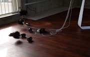 同プロジェクトに参加したアーティストの毛利悠子は《I/O》を再制作。これは、2011年の発表以降、アップデートを続けている、たゆんだロール紙が床にある埃などを掬い取りながら、ハタキやブラインド、電球と連動して動くインスタレーション作品だ。