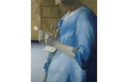 《手紙を読む女》では、朝の光の下で手紙を読むことに夢中になっている女性を描いたフェルメールの作品が、どのような状況を描いた作品であるかはわからないものの、彼女の背後に飾られた地図や、置かれた椅子の直線と、柔らかい丸みを帯びた彼女の姿は非常に対照的だ、また壁色や家具の色調が、彼女の青い幅の色を見事に引き立たせていることを解説している。