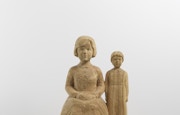 壁際に木材を積み上げたうえで、制作中の像をいくつか並べる余裕があり、彫刻をつくるのにまずまずの広さだ。