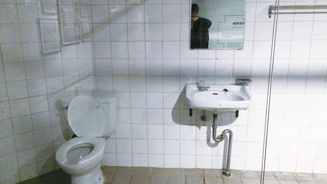 歴史ギャラリーの展示風景。朴正煕のために用意されたトイレ 撮影=長谷川新