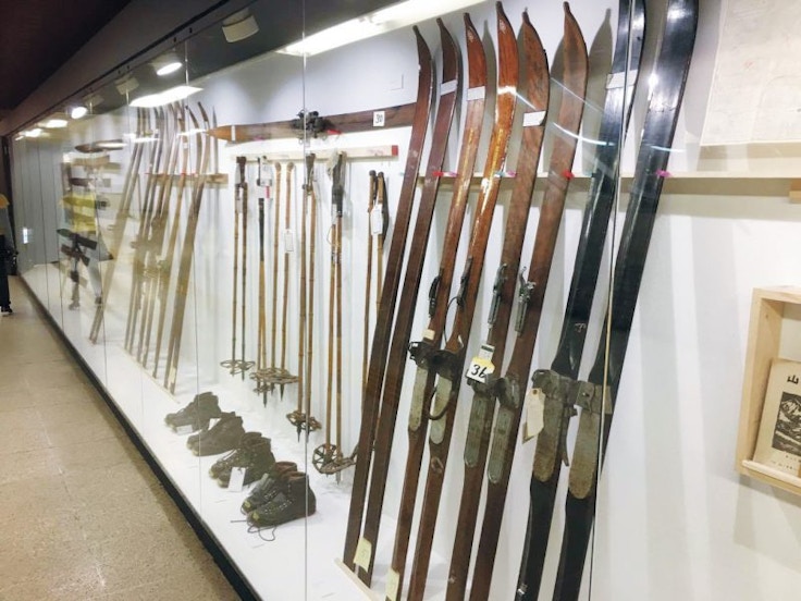 本展では直線状に延びるその空間の性質上、通行人が自動的に鑑賞者へと変容する。というよりも、その通路を歩いているあいだ、人は鑑賞者であることを拒むことができない。これは実際かなり強制力のある空間である。「スキー板」という、似通っているものの、よく目を凝らすと一点一点異なる形状で、かつ各々の歴史的経緯を備えている存在を並べ切ったことで、本展はそれぞれの「鑑賞者」に対して── より正確にはそれぞれの「歩行スピード」に対して──異なる「見え」を提供することに成功している。立ち止まってじっくり鑑賞する人には、日本ではじめてスキーを伝えたレルヒ中佐の人生、札幌オリンピックにまつわる政治性、あるいはスキー板の造形の変遷について知ることができる興味深い展示となるであろうし、足早に通り過ぎる人には、スキー板の反復が小気味よいリズムとなる。ここで展示されている知識や労働の時間は「情報」と化すことなく、押しつけられることもない。公共空間における展示のひとつのあり方がそこにあった。