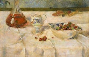 ポーラ美術館の《白いテーブルクロス》(1886)は、ゴーガンが滞在していた宿屋の夫人に、毎年の8月15日の聖母マリア昇天祭の慣習として贈られた作品。セザンヌやピサロの描法を読みとることができるだろう。