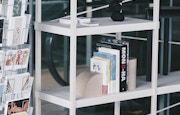 低めの天井部分に位置するショップ内に配置された大型の金属フレームは、空間と調和しながら、商品ディスプレイも兼ねつつ、店舗内装としてもアクセントを加えている。また、店舗什器やレジカウンターも、円や四角で構成されたシンプルなデザインながら、入れ子式の形状になっており、その可変性は非常に高いことが見受けられる。今後、美術館で開催される展示と共に、置かれる商品が変わっていくと共に、自由自在に店内のレイアウトを変更していくことで、きっと訪れる度に全く異なった印象を与えることも可能だろう。大胆に変化していくショップの姿を、今後は期待していきたい。