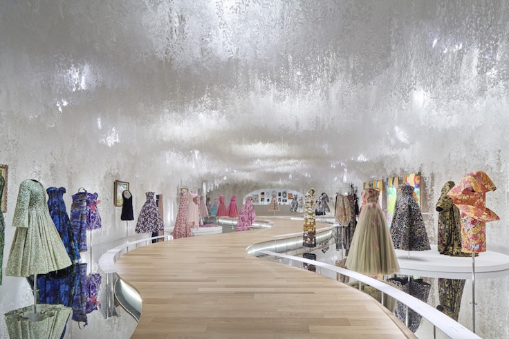 「クリスチャン・ディオールはファッションデザイナーになる前に建築家を志していた。オートクチュールのつくり方は建築とも親和性がある。オートクチュールは特定の人に対するユニークなものとしてつくられるが、建築もまたオンリーワンなもの。オートクチュールも建築も、人がいて、人に纏われて初めて成り立つアートフォーム。その共通点を意識し会場をデザインした」。