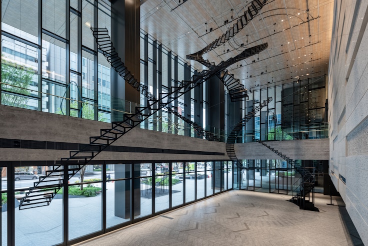 ──外と中をつなぐ場所に作品が展示されているので、時間帯によって光が変わりますし、ビルにいる人の動きによっても作品の見え方が変わってきます。