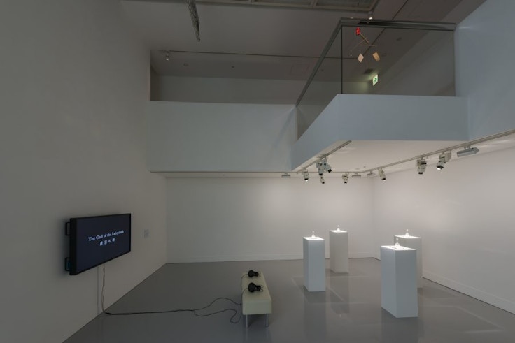 ダイダロスはミノタウロスの迷宮を建設したことで知られるが、本展での迷宮はJ・L・ボルヘスによる架空の作家ハーバート・クエインへの評論を、川久保が組み換えたアナグラムの映像作品である。視覚的に英語、2チャンネル・サウンドで聴覚的に日本語、スペイン語の3言語で再生される。クエインの推理小説『迷宮の神』は、ボルヘスによる架空の引用、「誰もが2人のチェスプレイヤーの出会いは偶然だと思った」という、読者を小説とは「別の」解決へと導くための一文のみで残されている。人間は機械とのチェスにすでに敗れているが、再編された物語では、複製された知能が自己生成的な生態体系にある4進法言語の暗号から、複製以前の記憶をたどる。物語の中で完結しない物語の外といかにつながるのか。途絶える文明の先まで、解読されえるものとして送信されるメッセージの未来が示唆されている。