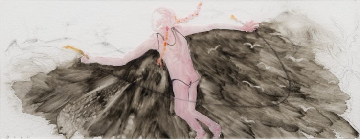作品は、透明アクリル板を支持体とし、夢の中で起きた出来事であるかのように、黒を基調にした、夜に潜む人間の暗がりを描いたものに見える。薄い支持体に重ねられたストロークによって、絵具が積み上げられ、描き出そうとする像の在り処へと向かい、掘り下げられていく。色、形、素材とあらゆる構成要素はつくり出された空間を確かめる手がかりとなるが、その絡まりは、必ずしも意図によるものではない。描いているものと描かれているものの微差が探索され、そこで未知のバランスが調停されようとしているのである。どこまでたどれるかは不明であるにせよ、それでも残された作品は現時点において描き手が入り込んだ領域に等しい。