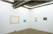 本展ではドローイングによって、なぞなぞが四問出されている。二つは文字(カラスとハトとスズメはなにをしていた?/あさおきてさいしょにすることは?)であり、二つは絵(金持ちの家に泥棒が入りましたが、何も取らなかったのはなぜ?/話し相手になってくれる花は?)である。レタリングではなくゆるい幾何学的な抽象画のように描かれた前者と、泥棒が持っていかなかった1000 万円札や種類を特定できない花の描かれた後者は、答えがわかっても、問いと答えの双方から正しさをはぐらかす。それはエイプリルフールにつく嘘と、その起源自体が不明な慣習の二重の不確かさに似ている。