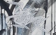 ペンシルのスクライブ、マーカーのドリップ、エアゾールの噴射と、あらゆる線形が、運動とスピードとして解析されている。ストリートの特殊な空間に開かれているグラフィティを、別のルールをもつアートへと適切に解体し、再構築することには、きわめて厳密な操作が求められる。しかし、かつてレターとバックグラウンドのためにあった「かく」ことは、グラフィティにも、アートにも編み上げられないトランスフォームを繰り返し、かついずれのコンテクストをも決してないがしろにせずに、そこで絡まる回線を接続し直そうとするためにある。このような思考の経路をたどれば、容易に判読させない文字の形態化であるレターのあり方は、バックグラウンドの深くから入り組むことになる。絵画空間に浮き沈みする、あまりにグラフィティ的な線形は、文字以前にある視覚言語と連動した文体となって、大山のスタイル、すなわちQTSを、身体的、そして造形的な現在時制へと置いたまま、生態的に行き交わせる根拠をつくり出しているのである。