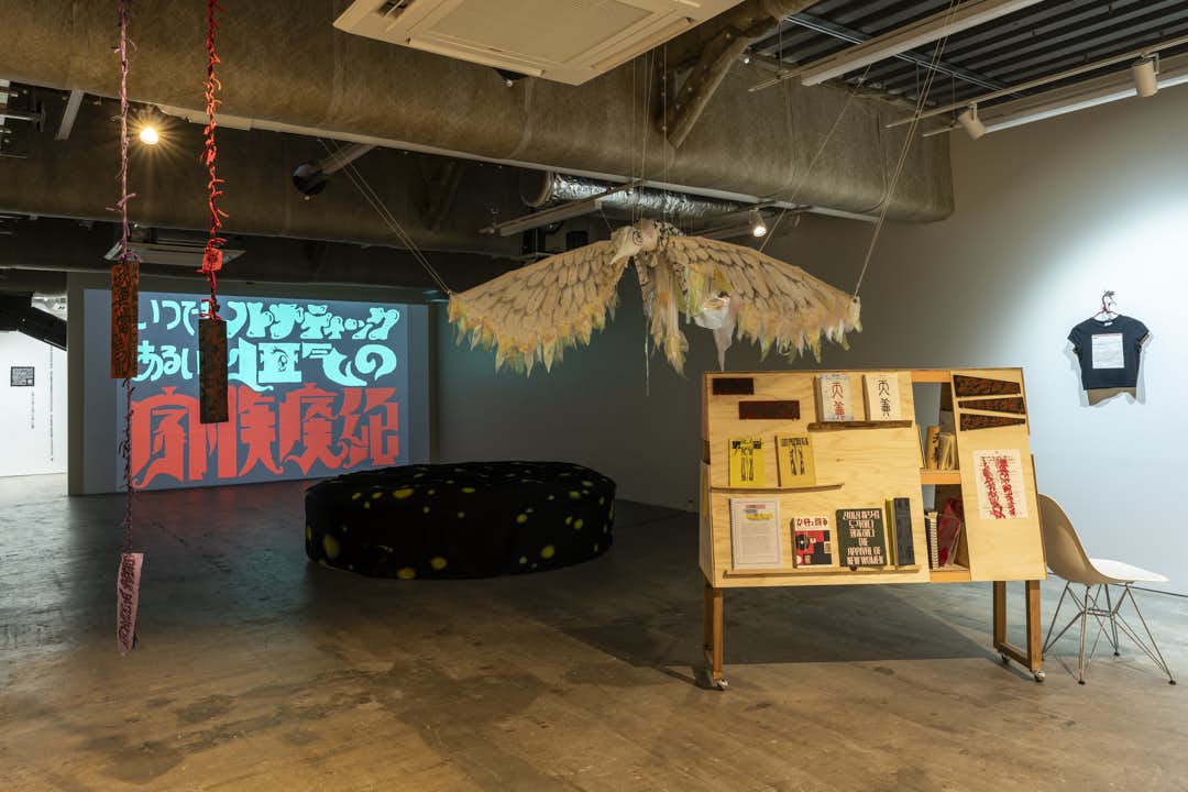 Multiple Spirits(マルスピ)のZINEを起点として、〇九一四、エイミー・スオー・ウー(吴索)、遠藤麻衣×百瀬文など、様々なアーティストの作品が展示されていた。家族廃絶やアナーカ・フェミニズムを軸に、書籍や映像作品が紹介されるなか、筆者が訪れた最終日には、〇九一四による木版画パフォーマンス「朱門解体」が行われていた。来場者との対話を介して、「解体したいもの」が書き込まれた障子は、アーティストや参加者の手によって破壊され、解放されていく。ここでの破壊は、のちの修理を前提とするものではなく、既存の枠組みを解体し、別のつながり方を一時的に開く実践と受け取れた。言葉と資料、身体的な手つきが相互に連鎖し、日常の規範をずらす回路が開かれていた。