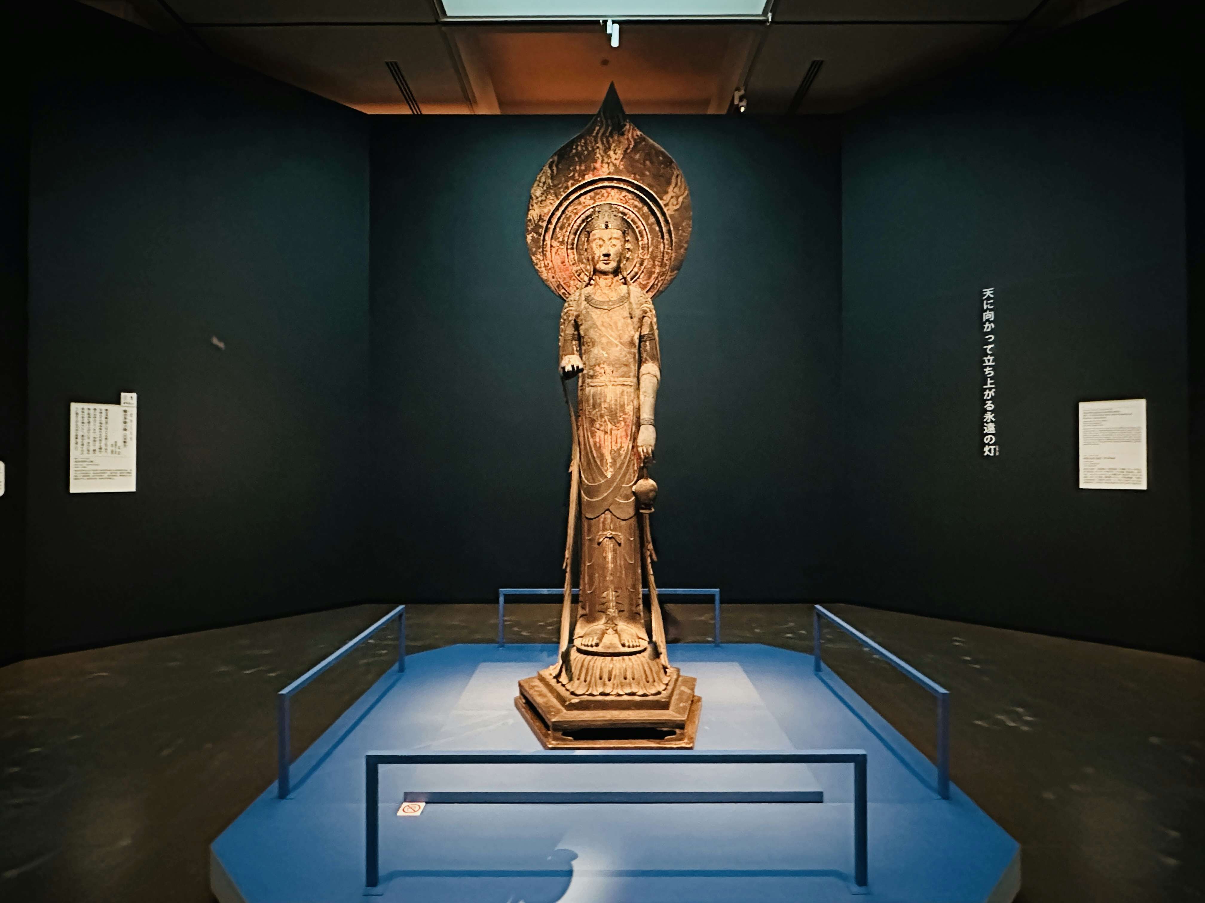仏教・神道美術の「尊い」世界観を存分に味わうことができる、奈良博の130年記念にふさわしい展覧会でした。古代から続く「祈り」を形にしたものが一堂に会するこの展覧会では、仏像や仏画の荘厳さを損なうことなく展示しており、歴史的価値の高さに加えてこれを守り残してきたことの「尊さ」を感じました。会場のいたるところに子供向けの優しい解説文が添えられていたこともとても良い試みだと思います。展覧会中、仏像の前で思わず合掌してしまったのですが、きっと展覧会企画者の意図には「美術品」としての展示物ではなく信仰の形、歴史の重さ、そして仏教・神道美術に対する敬意の現れがあったのだろうという印象を受けました。