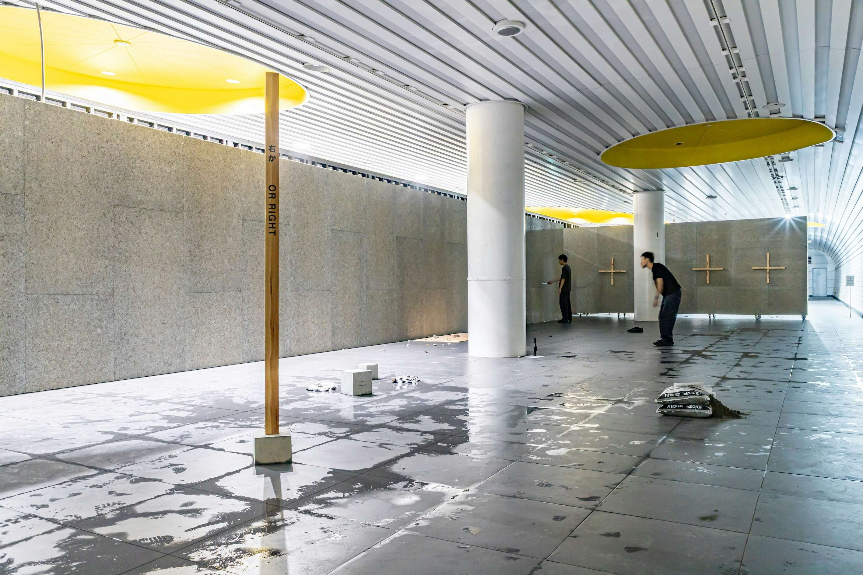 2025年6月、横浜市の新高島駅地下1階にArt Center NEWがオープンした。運営代表の小川希のステイトメントに示される通り、ソーシャルメディアによって加速した世界のフラット化は、悲惨な虐殺から芸能人の不倫まで、わたしたちの情動をジャックする即時的な情報を等価に循環させ、世界との遭遇を未知(NEW)として受け取る感覚そのものを麻痺させてきた。9月12日から14日に開催された本展では、アジア各地のオルタナティブスペースとコレクティブが集結するフィジカルな場を設け、等価な情報空間とは別の回路で未知への感覚をつなぎなおしてみせた。さらに、13日に行われた橋本聡《数秒、数日》は、展示空間に配置されたインストラクションを介して、パフォーマー(小山友也、阪口智章)と鑑賞者をその実行者として等価な機能に還元するフラットな空間を設計した。同時に「息を止める/息が止まる」といったインストラクションが、鑑賞者の身体感覚に微細なズレを生じさせ、予測可能で効率的な情報の伝達回路にねじれをもたらす。外に開かれたネットワークと感覚の内に折り返されるインスタレーション。身体をフィジカルな夾雑物として介在させるこれらの方法もまた、フラットな情報空間の内部から世界の複雑さと出会い直す場を再編する実践と言える。