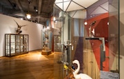 ビスカール 今回のセノグラフィはとても美しいと感じています。例えばブローチには、「小さな彫刻作品」と表現したくなる美しさがありますが、ジュエリーはサイズが小さいので、ほかの作品とともに展示するのがとても難しい。しかし、適切なサイズの展示什器と、ジュエリーを輝かせる照明の演出が効果的で、とてもバランスが取れた展示になっています。学術資料の展示も説明的すぎず、デザインと鳥類学を同時に楽しむことができます。