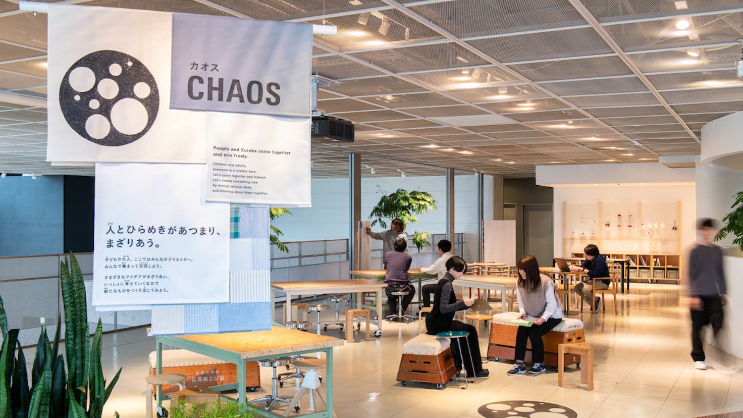 AkeruEは、パナソニックセンターの2フロアにエリアを展開。2階は、ひらめきにつながる食体験を提供する「E(イー)」、魚と植物を同じシステムで育てる循環型栽培・アクアポニックスから自然の不思議やエコシステムを観察できる「GAIA(ガイア)」、3Dプリンターやレーザーカッターなど様々な機械でモノづくりを体験する「TECHNITO(テクニート)」、交流の場として「CHAOS(カオス)」のエリアが開かれている。
