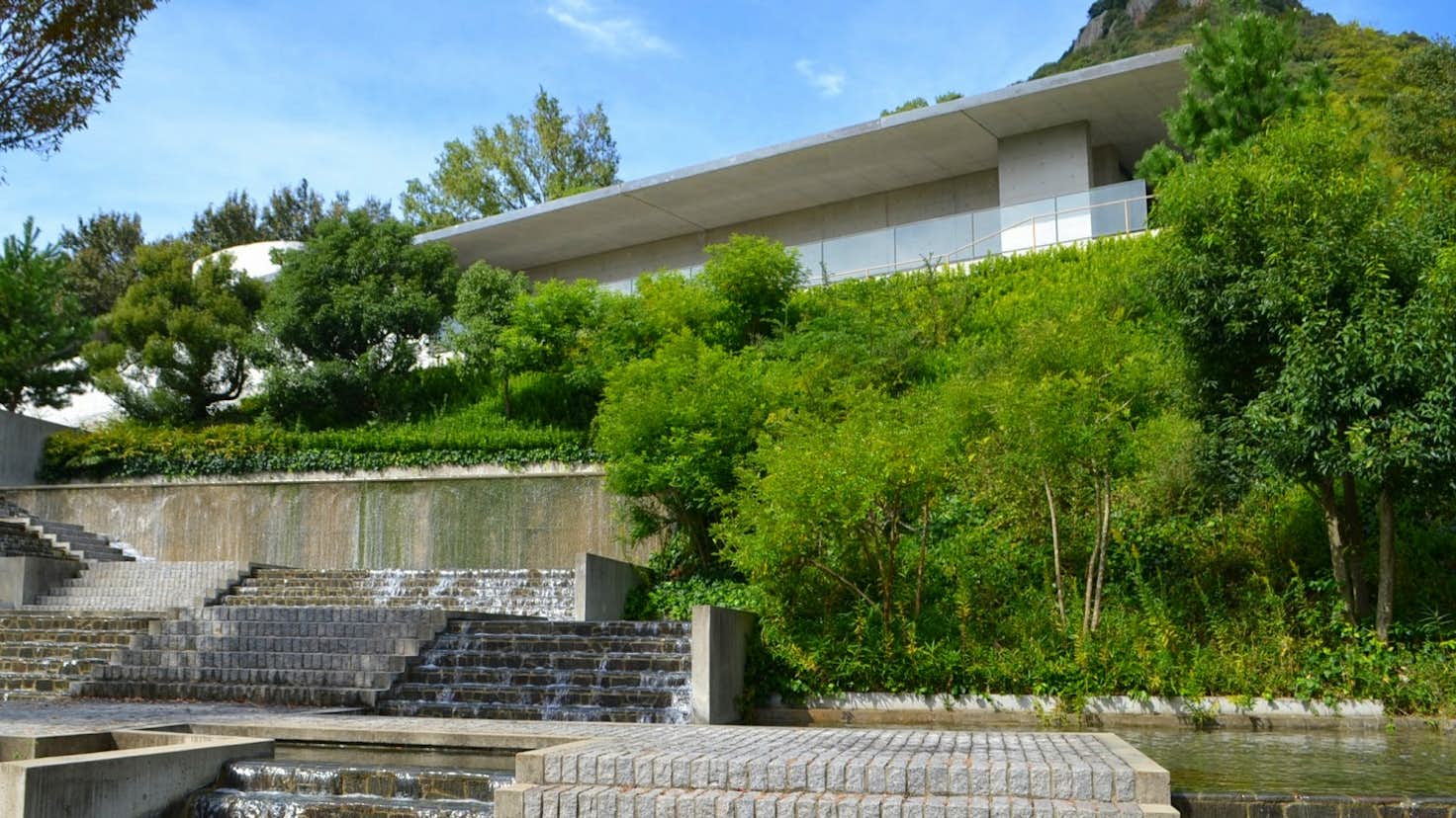 屋島山麓の5万平米あまりの敷地におもに四国島内から移築復元した33棟の建物が点在する野外博物館、四国村ミウゼアム。四国村ギャラリーは、その四国村ミウゼアムの敷地内にあるギャラリーだ。2002年に開館し、安藤忠雄設計によって建設された。