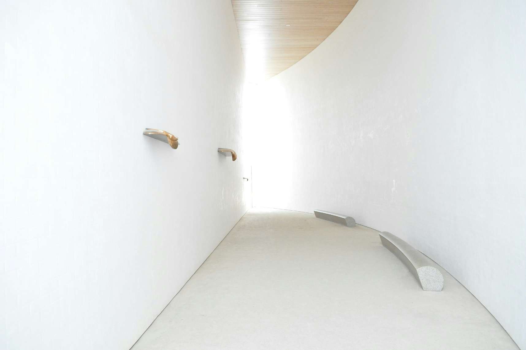 また、奈義町の雄大な自然を作品の一部として見せる空間が特徴的で、3つの展示室は「大地」「月」「太陽」と名づけられ、それぞれ奈義町固有の軸線に沿って建つ。