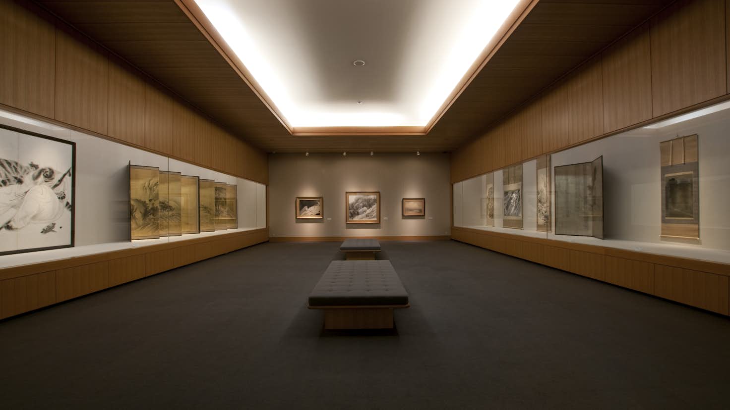常設展示「近代水墨画の系譜」では、竹内栖鳳、横山大観、菱田春草など近代日本を代表する作家や、篁牛人など富山県に縁のある作家の作品を展示。もうひとつの常設展示「下保昭作品室」では、砺波市出身の日本画家・下保昭(かほ・あきら)の作品を紹介している。また、日本画や工芸など幅広い分野の企画展も開催。
