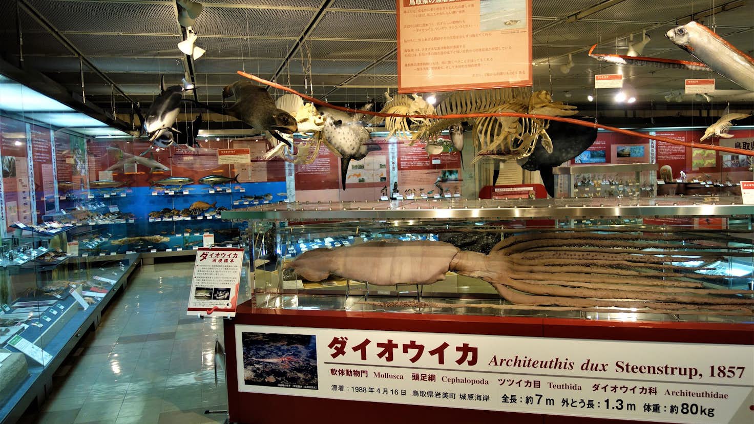 鳥取県立博物館は、県民の教育および文化の発展に寄与するための施設として久松山下鳥取城跡内に設立され、1972年に開館した総合博物館。博物館1階の「地学・生物」「歴史・民俗」「美術」の常設展示では、3000点あまりの資料により、郷土の自然と歴史、美術をわかりやすく紹介している。