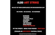 「#J20 ART STRIKE」と題されたこのストライキでは、就任式当日に美術館、ギャラリー、コンサートホール、劇場、スタジオ、学校などの文化施設を閉鎖し、トランプ大統領就任への反対を表明しようというもの。
