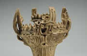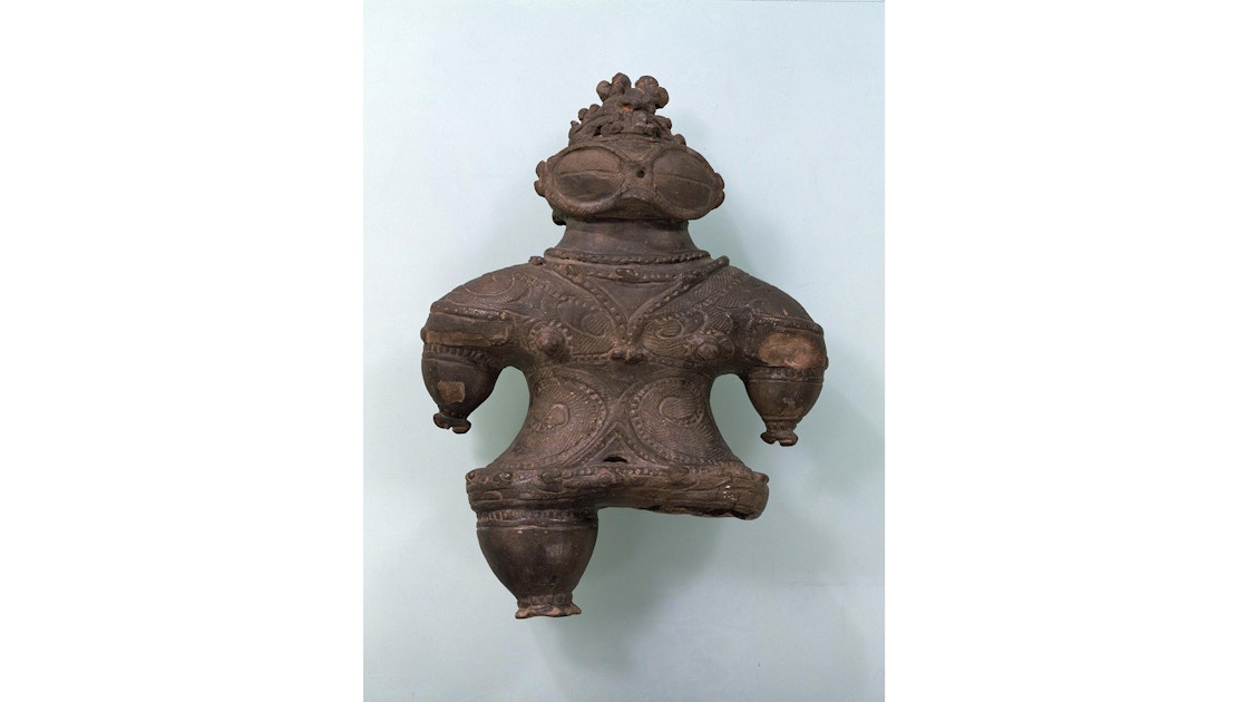 本展では、縄文時代といえば誰もが思い浮かべるであろう国宝《火焰型土器》をはじめ、ユニークな姿かたちをした重要文化財《遮光器土偶》や、国宝《土偶 中空土偶》、重要文化財《木製編籠(縄文ポシェット)》などを展示。